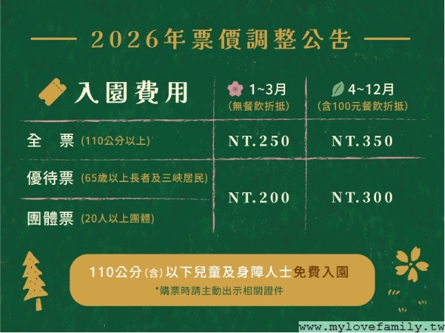 *110公分以下兒童及身障人士出示證件免費入園