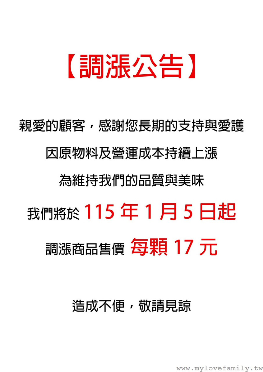2025/1/3再訪,發現有調漲通知喔!每個漲二元,就在漲價前,每個都口味都買二個回家分享。