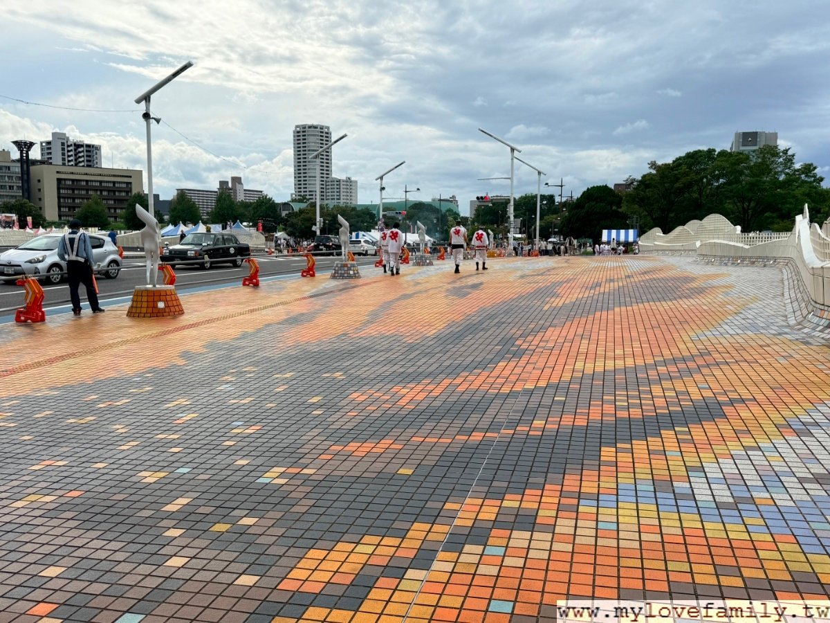 這趟小倉城的旅程,從莊嚴的古城到熱鬧的街頭,像是一次穿越時空的散步。天守閣內的展示帶我回到江戶時代,看見武士的身影與庶民的生活;走出城外,沿著城郭繞行,拍下許多古城與現代交錯的畫面,卻也不免覺得攤位過多,稍微沖淡了古城的氣氛。隨著腳步越走越遠,來到紫川親水廣場,剛好遇到精彩的腳踏車表演,孩子們的笑聲與觀眾的驚呼聲讓我也忍不住開懷。再往前走到大芝生廣場,腳下彩色的地磚映入眼簾,讓我聯想到最新款 iPhone 的橘色,意外有趣。途中又遇到祭典花車與太鼓隊伍,傳統的鼓聲在空氣中迴盪,充滿力量與活力。最後來到勝山公園,眼前的和平之鐘與千羽鶴,讓人心境瞬間沉澱,帶來一份寧靜與感動。伴隨著悠揚的音樂聲,我緩緩離開這片公園,心裡充滿滿足。回到飯店後,還和同事一起衝去超市大採購,滿手戰利品,笑著分享一天的趣事。這一天在小倉的時光,既有歷史的厚重,也有現代的活力,從熱鬧到靜謐,留給我無比豐富而難忘的回憶。