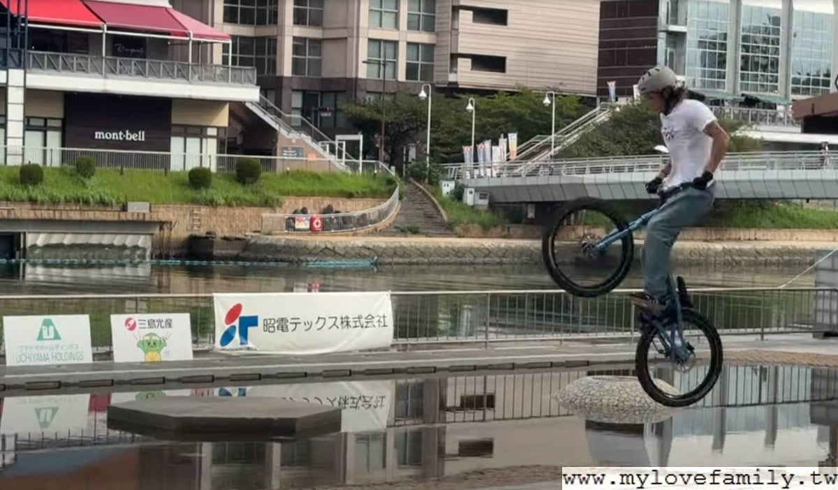開始離小倉城遠一點的地方,走到紫川親水広場看到了腳踏車表演,超好看的,看到嘴八都合不攏了。。。很多家長帶小孩在看,真的很有意思,這段我很喜歡。