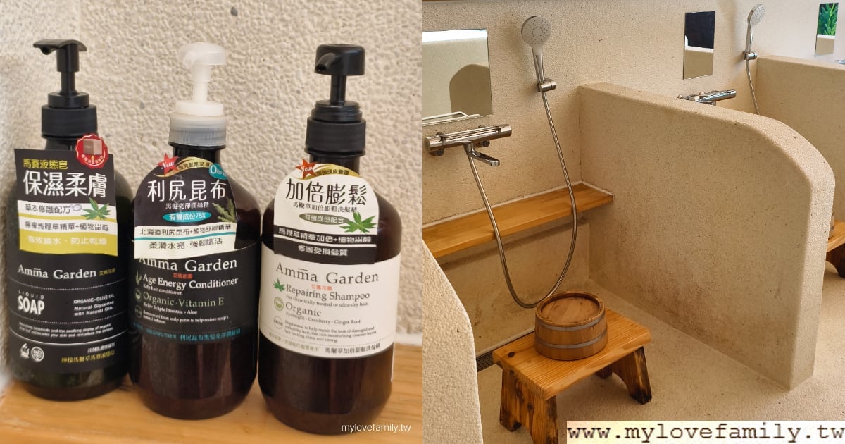 淋浴區有分坐式及站立式,三個坐式的淋浴空間,提供木椅可以讓大家坐著淋浴,有提供洗髮精、沐浴乳、潤髮乳,不得不說,這三樣備品超好洗,本來想各買一罐回家,但展售區沒有看到,當下也忘了問工作人員,下回再訪時一定要問看看。