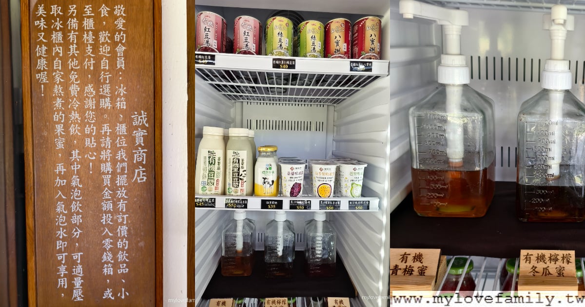 這提供免費的氣泡水及有機梅蜜、有機檸檬冬瓜蜜、有機李子蜜,直接把有機檸檬冬瓜蜜+氣泡水,泡湯後來一杯,精神百倍。另外,有標示價格的請自行依價格投入零錢箱。