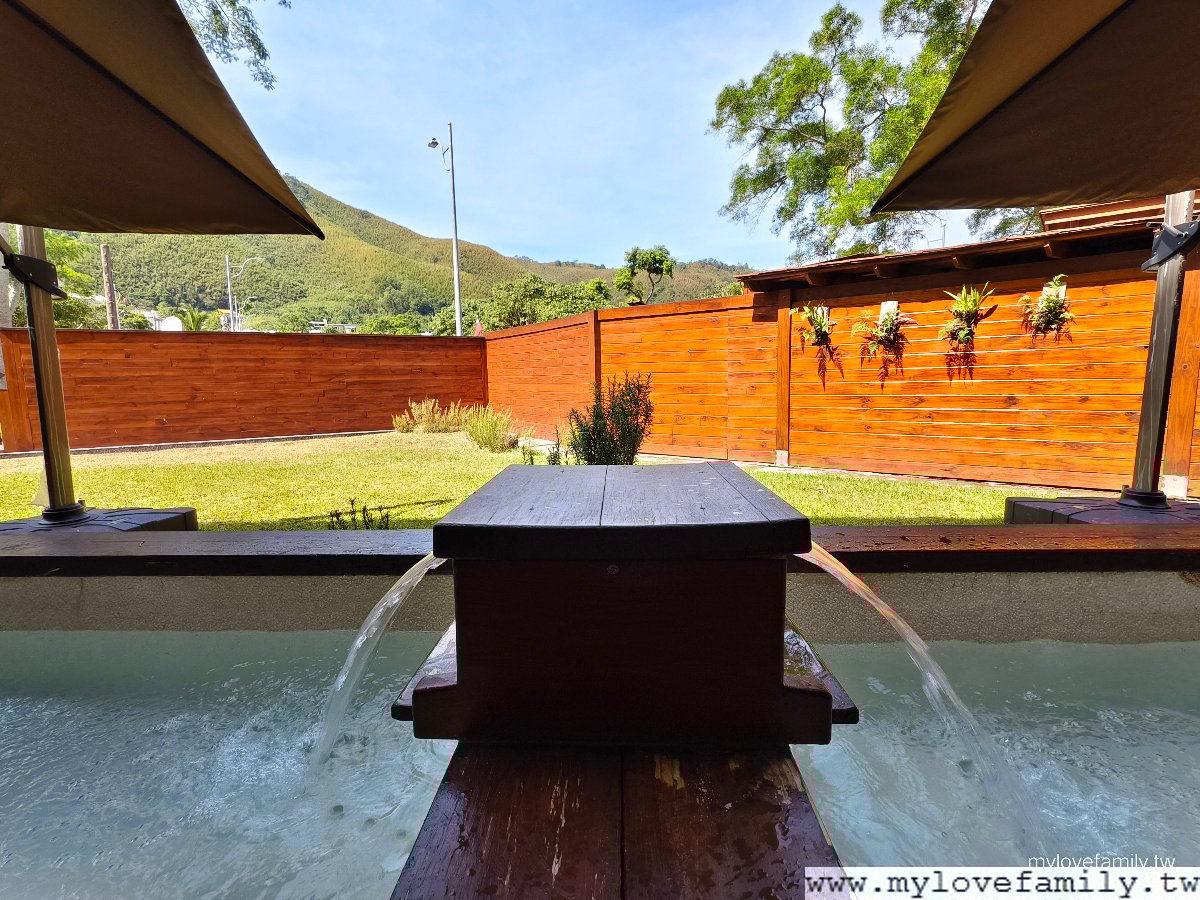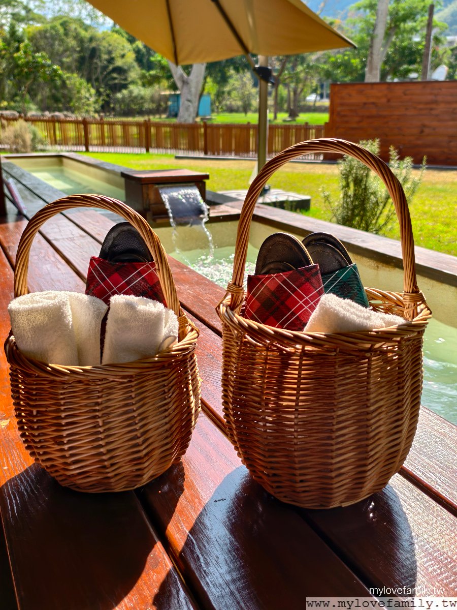 餐後,休息片刻,戶外泡腳去,足湯有提供拖鞋及毛巾,來到這泡湯,真的空手來就可以了。