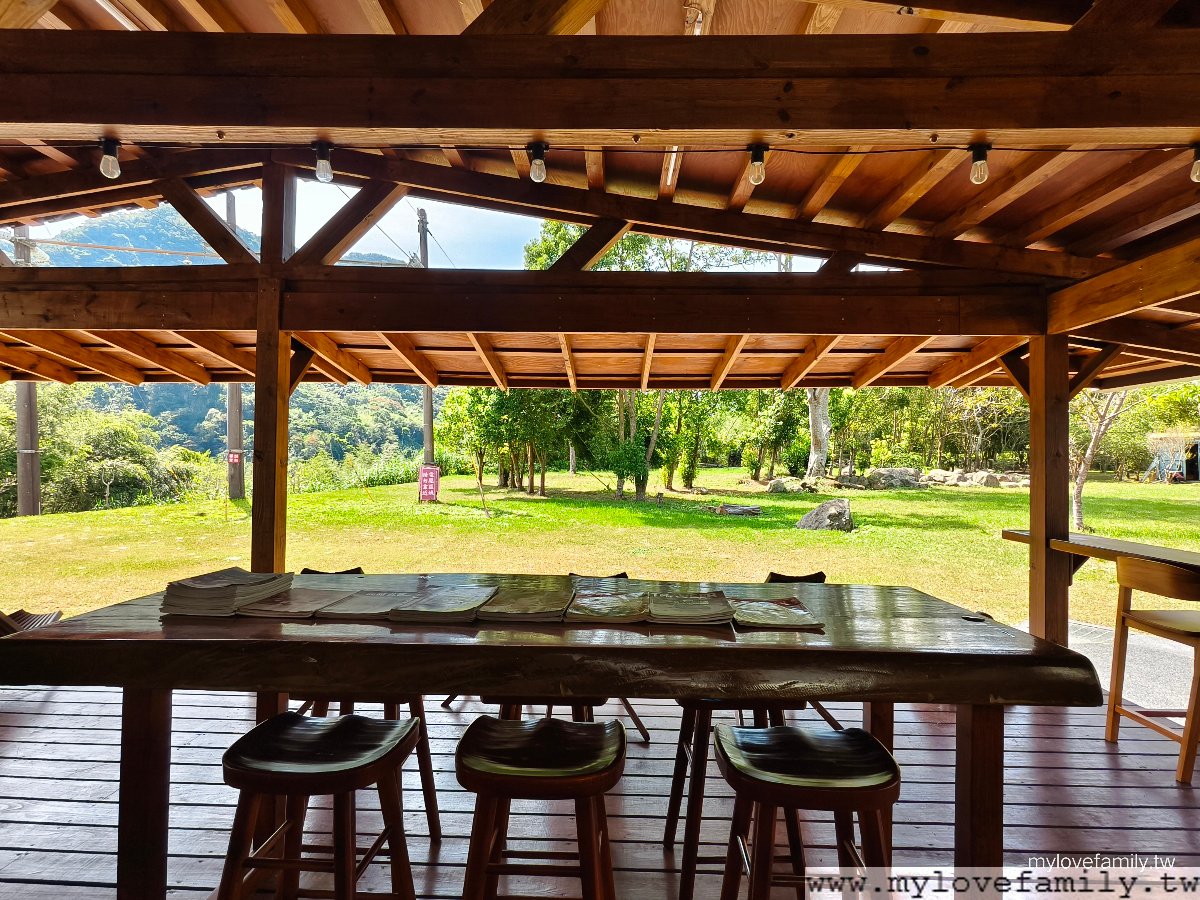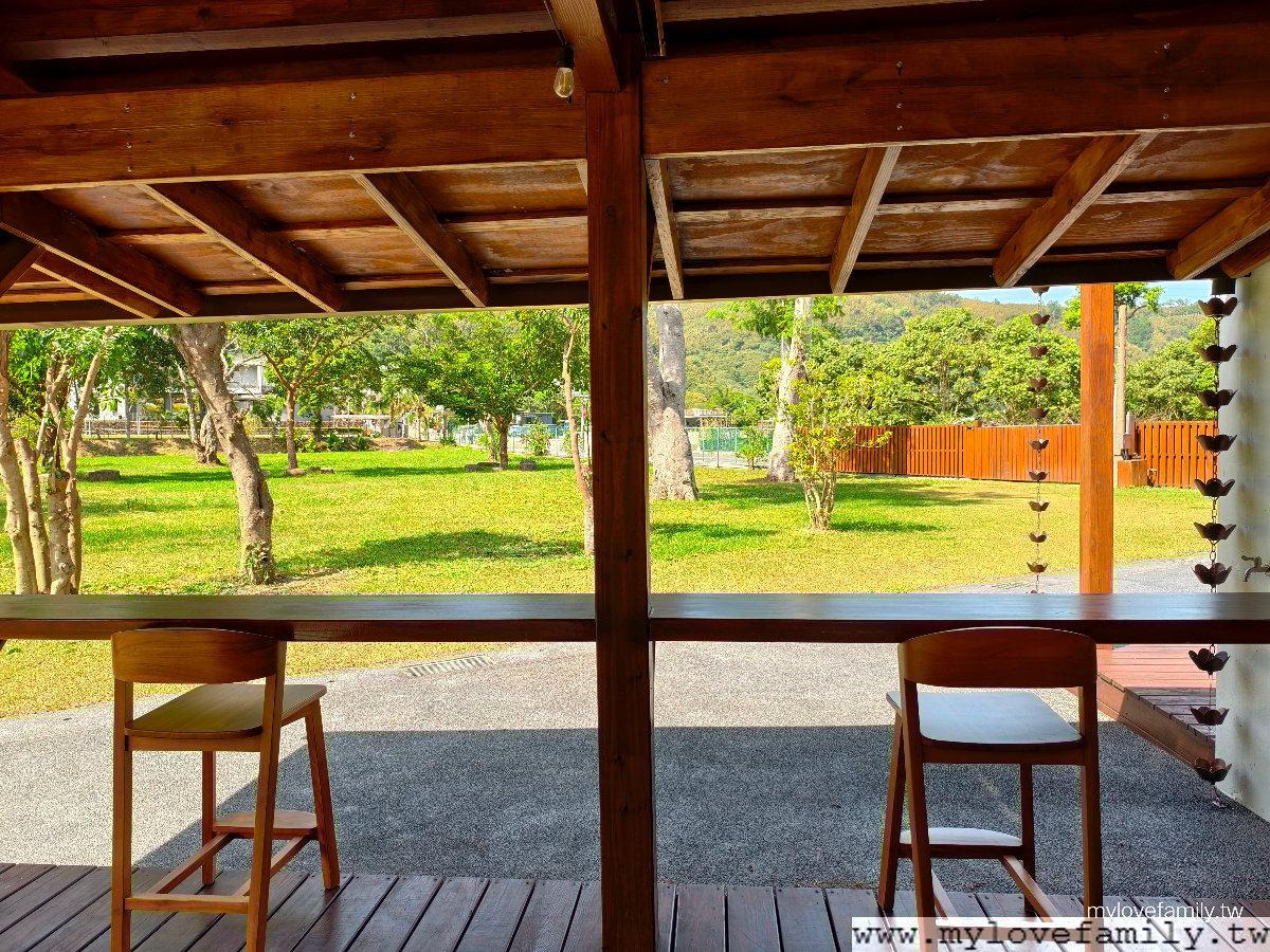 休憩區空間面向這一片草地及山林, 找個自己喜歡的座位,坐下來聽聽山林裏的聲音。