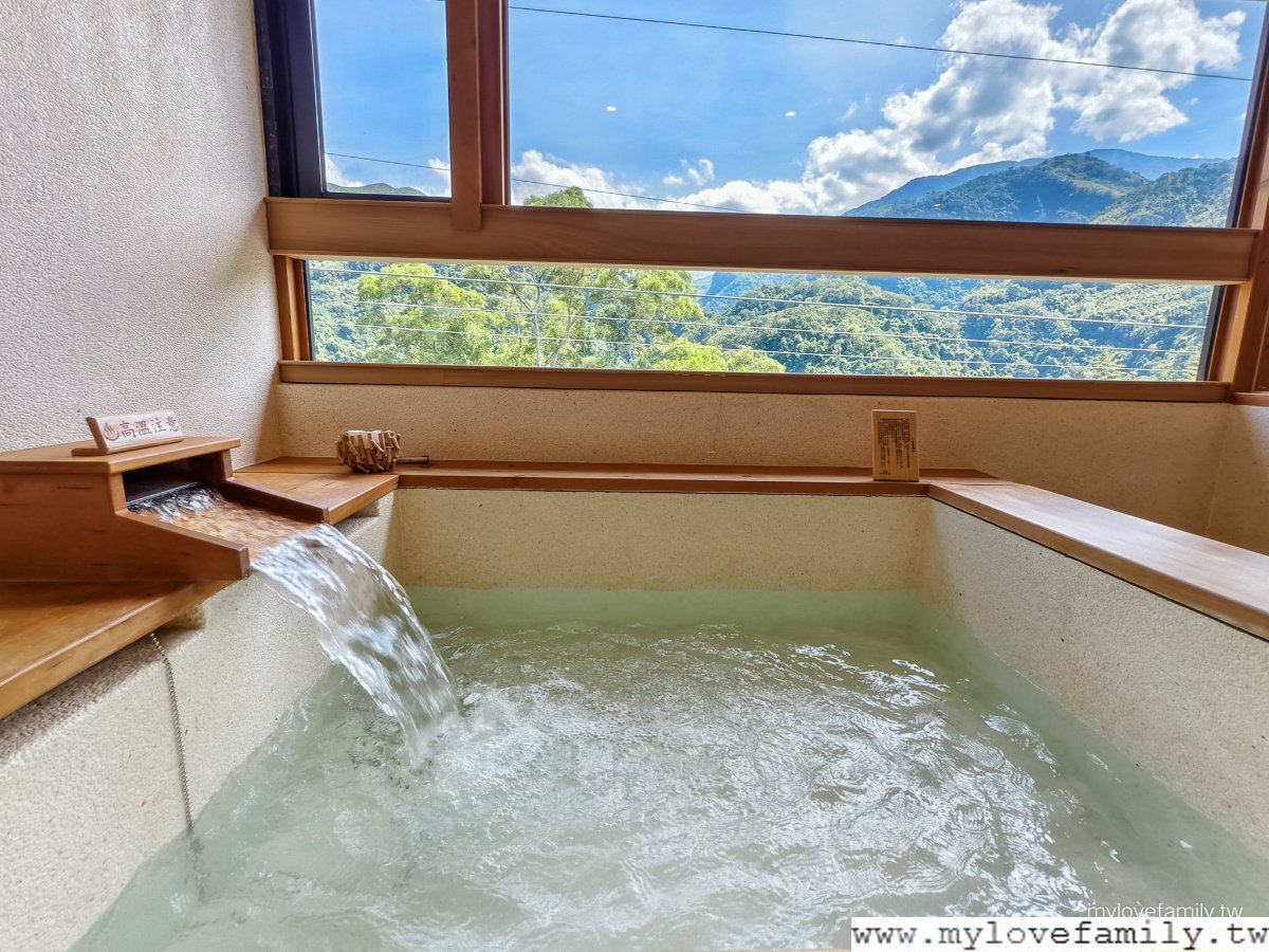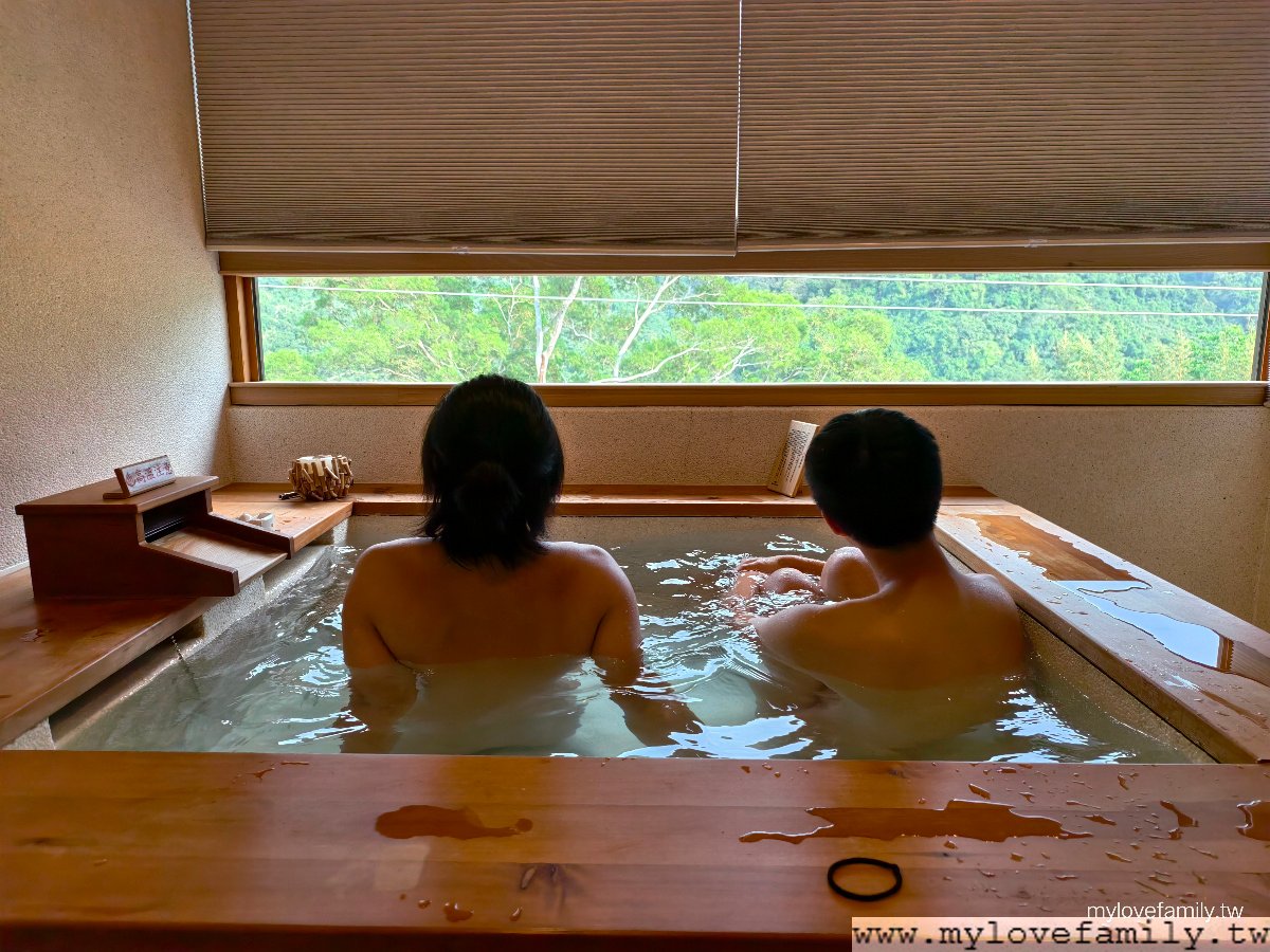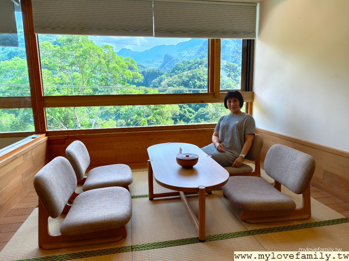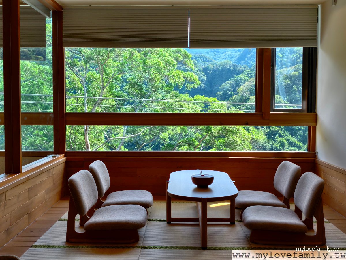 擁有山景的 18坪溫泉湯屋 ,我家青少年一進入後好興奮,二兄弟一直說:有木頭的味道,這好高級。每一間都有寬敞溫泉池,還有日式榻榻米空間、客廳、獨立廁所與梳妝台,一家四口能在同一空間內,輪流泡溫泉之外,給自己沖一杯咖啡或放鬆茶,享用免費的零食,各自能做自己喜歡的事情,二兄弟一下子打電動,一下子唸書、做設計作品,我及戶長則是各自看著影片,時而望著山林,來到這不止是泡湯,而是一起享樂。