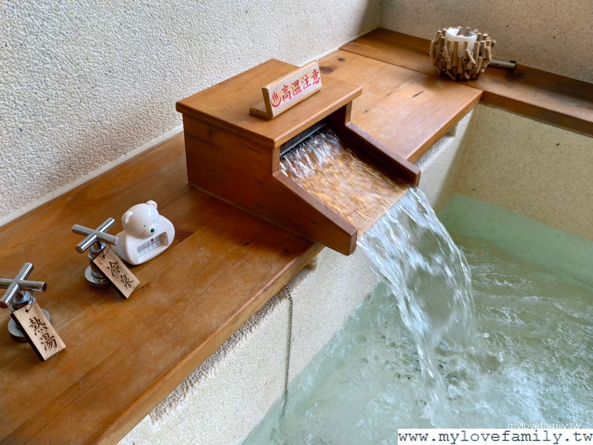 寬敞溫泉池及沐浴空間,這個泡湯池超大,以我家二兄弟身高177公分及177.5公分,一起泡湯也不擁擠。