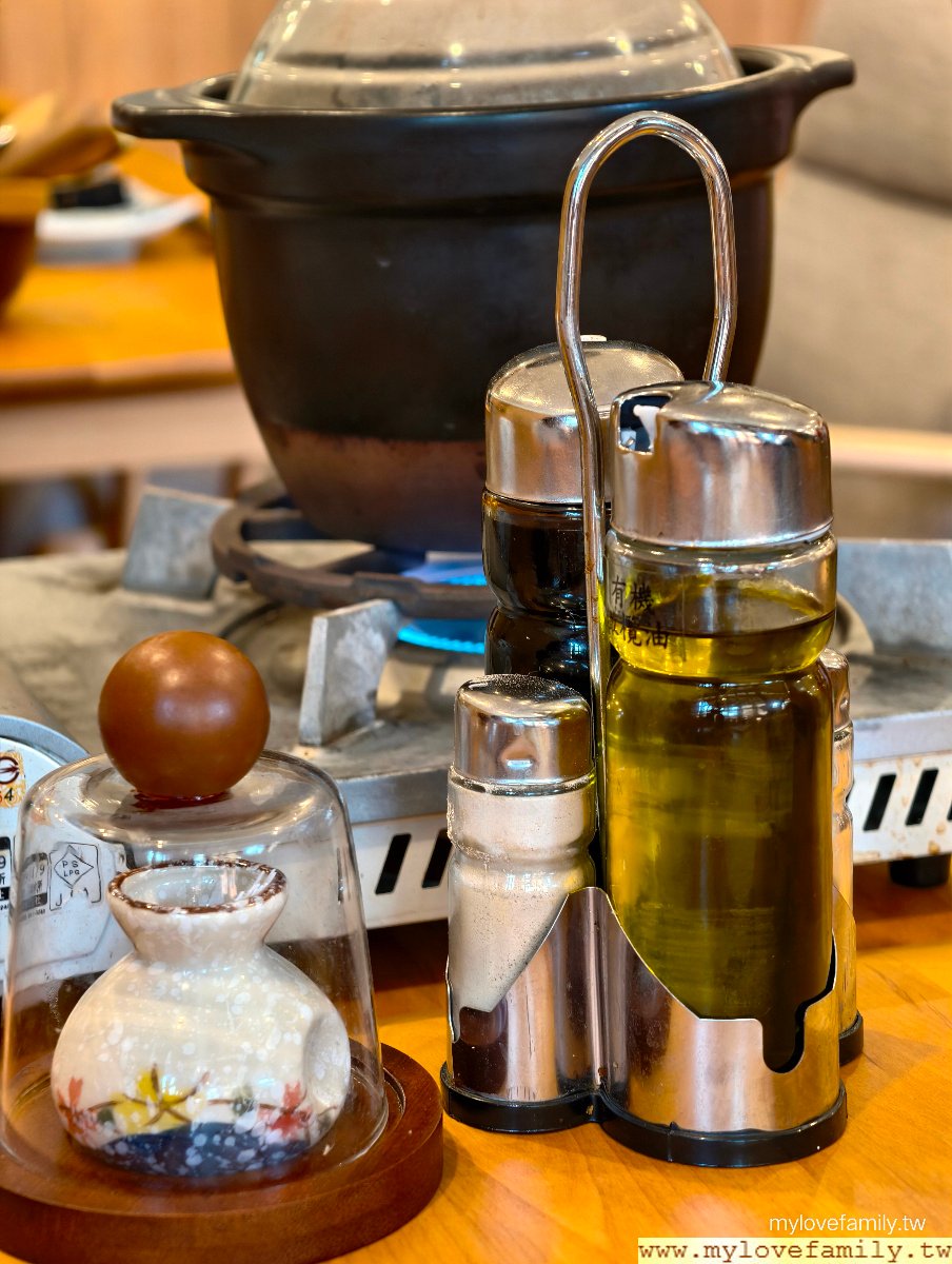 桌上的調味料有鹽、橄欖油、醋,工作人員說:因以雞湯以原味為主,調味上如覺得較清淡,可自行再加入調味。