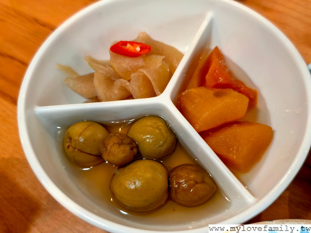 蜜煮有機地瓜、醬醃有機蘿蔔、醋漬有機青梅,我們特別喜歡蜜煮有機地瓜,還追加續了一次蜜地瓜。