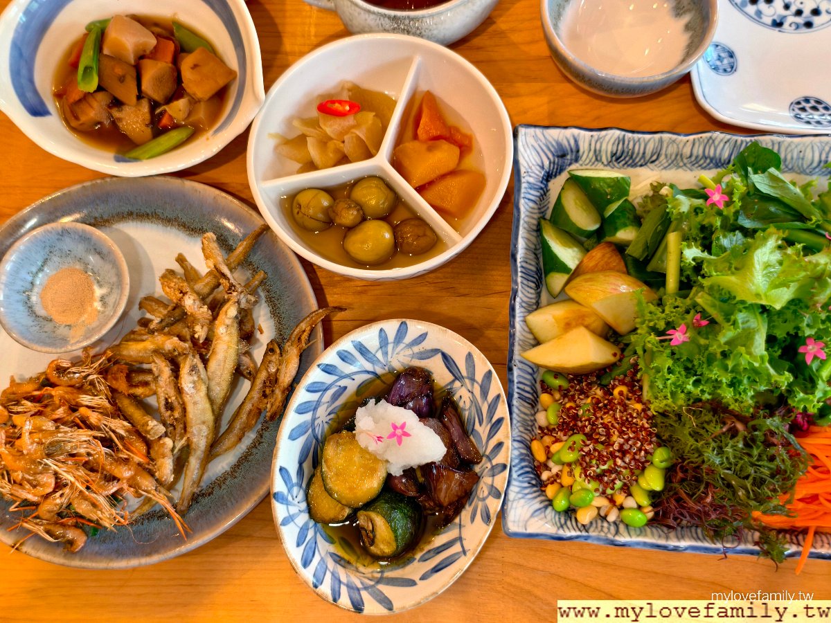 「食當地、食當季、食有機」,以自家製的有機食材及本地食材入菜,從奉茶開始到最後的甜點飲品,不止享用美食,更是吃的健康。午間套餐共有10道料理,餐點也很日式風,麵包、沙拉、冷鉢、煮物皆可續盤。