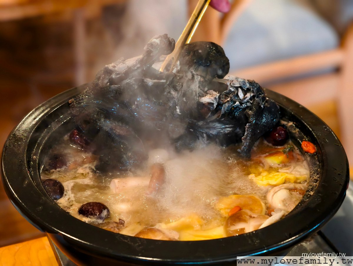 有機當歸燉烏骨雞湯,使用自家農場自種的有機當歸,搭配人蔘、紅棗、黑棗、枸杞,這一鍋好補。