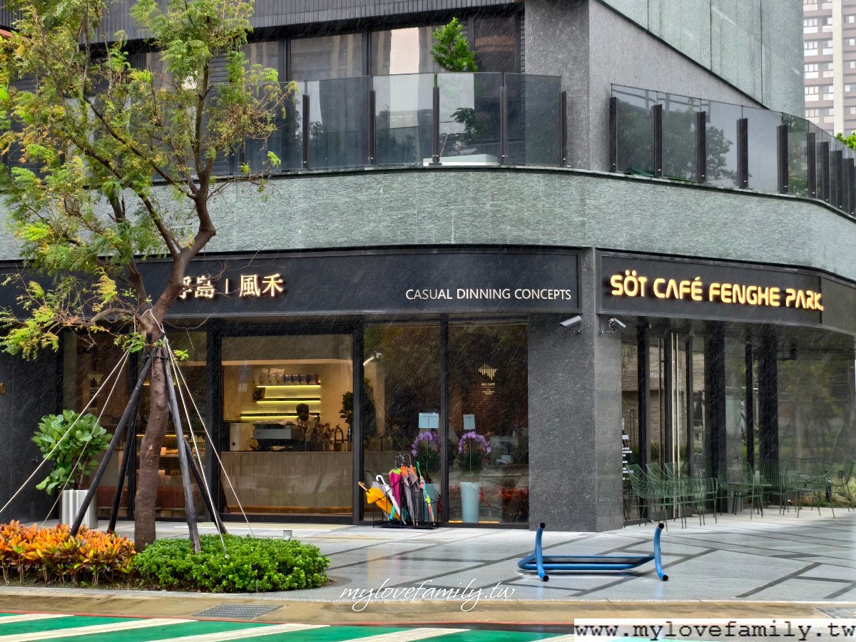 【Söt Café Fenghe 浮島風禾】延續了品牌招牌字體,顯眼的外觀也延續了【Söt Café rivulet. 浮島溪】的裝潢。
