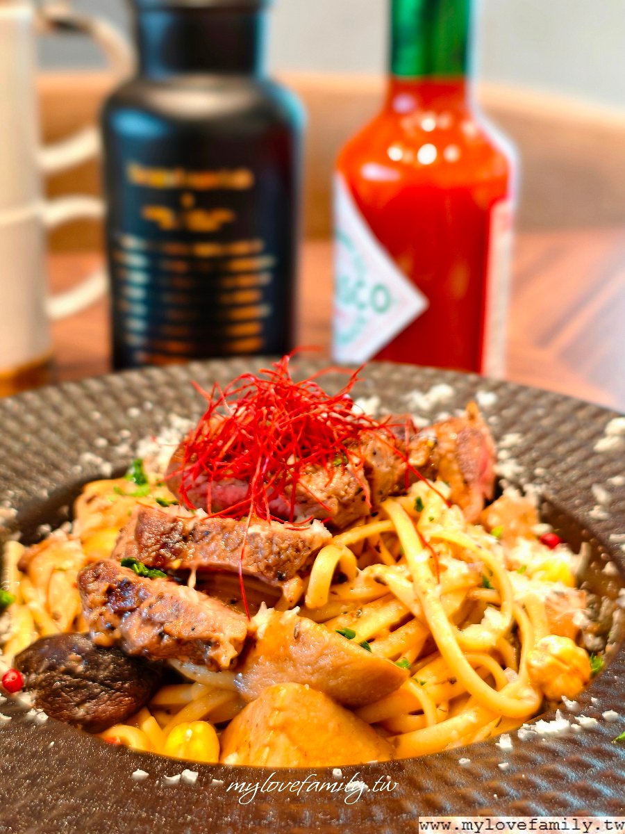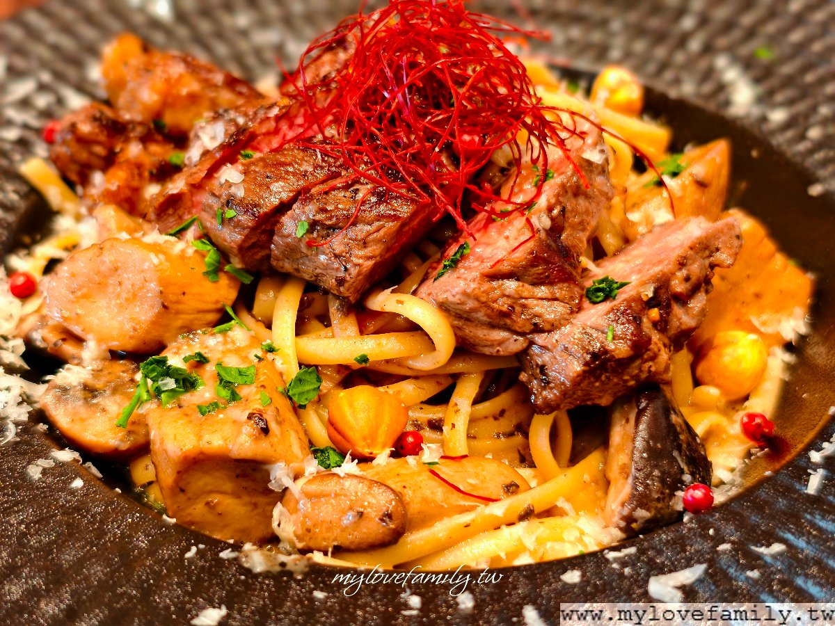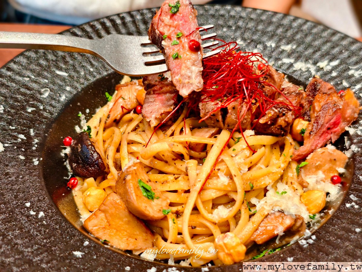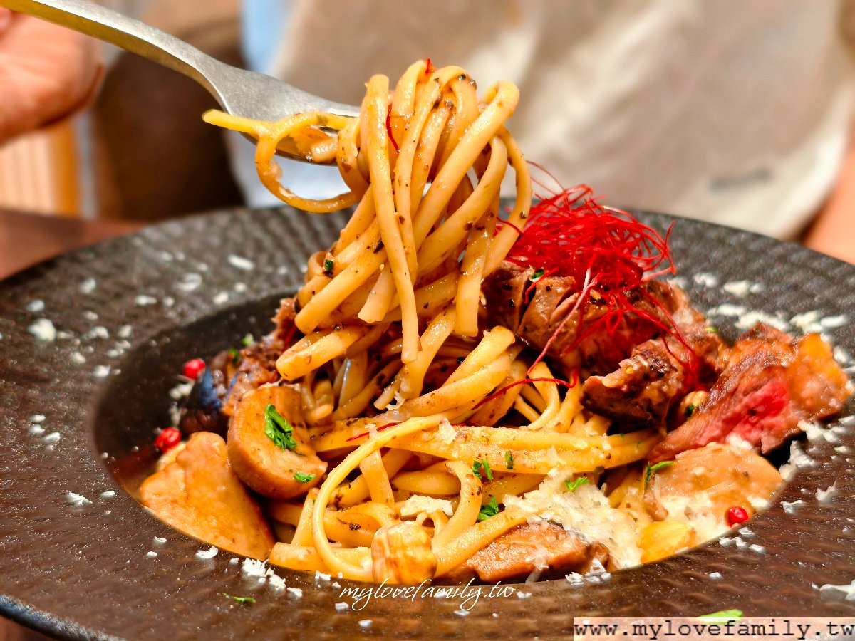 炙牛肉牛肝菌細扁麵,炙牛肉料理的很剛好,份量也是誠意十足,鮮嫩多汁的牛肉,軟硬適中,麵條的部份,比起一般的義大利麵條,我們更喜歡有嚼勁的細扁麵,細扁麵吸滿了醬汁,連牛肝菌鹹香剛剛好。