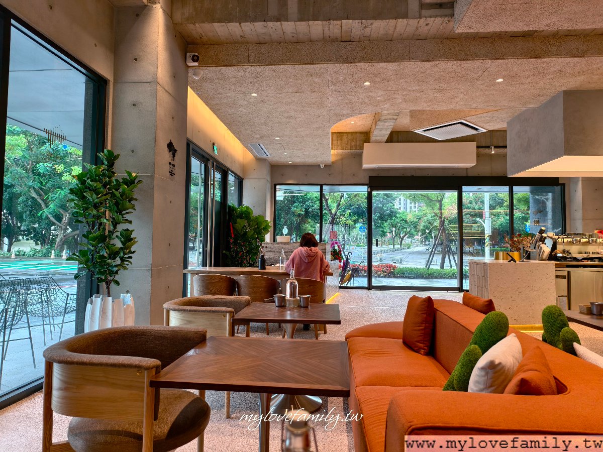 我們到訪【浮島風禾】時,當天下著大雨陰雨的時刻,一整面落地玻璃採光,加上暖色系的燈光,整個空間明亮,如同【浮島風禾】給的溫暖、溫馨感。