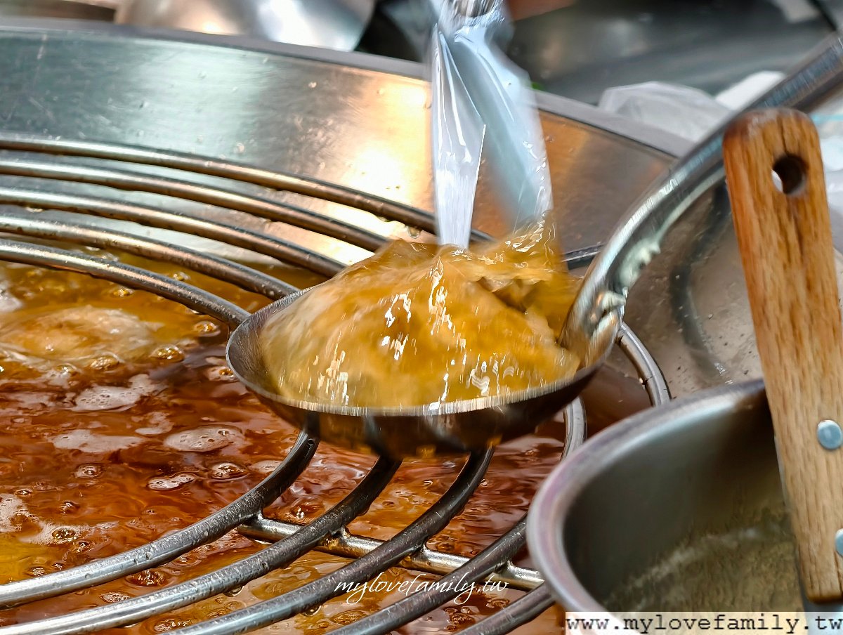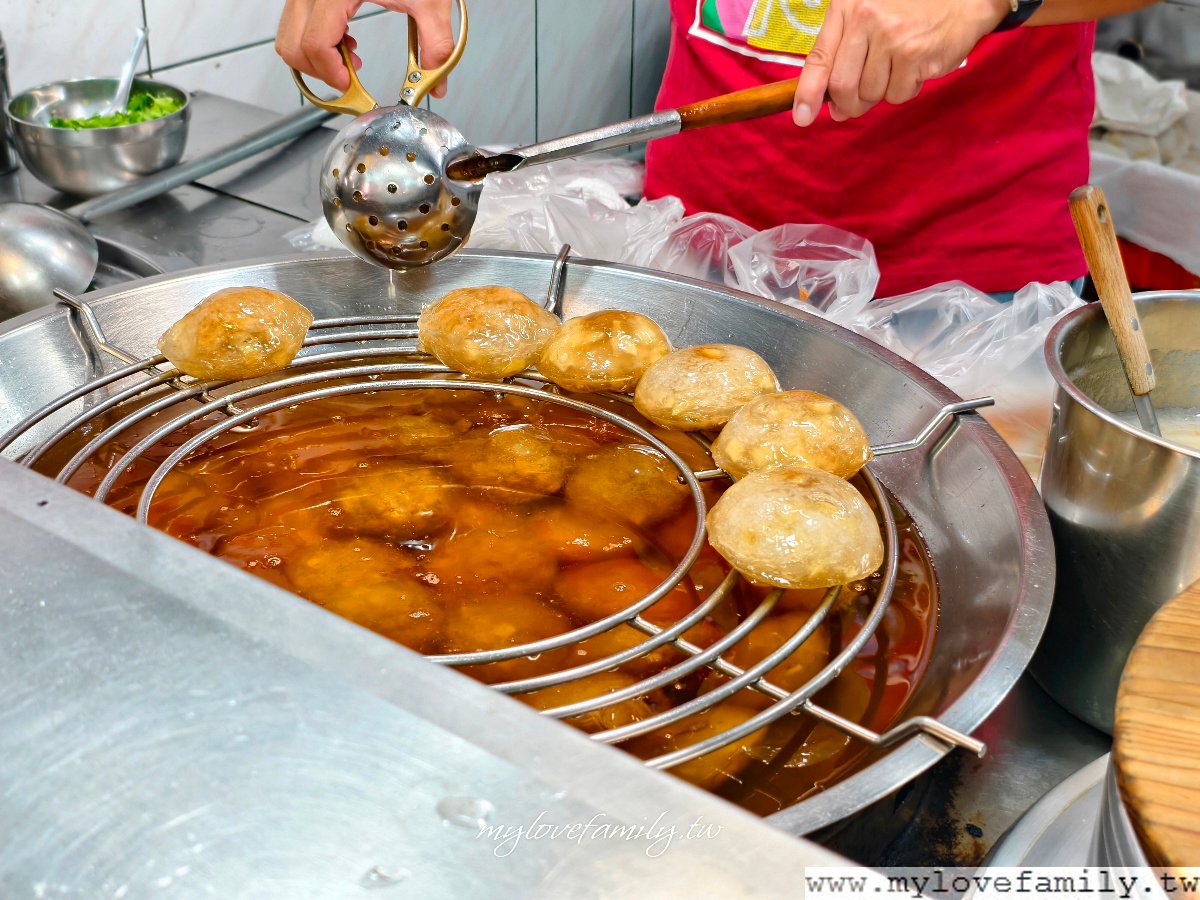 每回排隊時,總喜歡看著老闆及闆娘在裝肉圓的畫面 ,從油鍋內撈起肉圓、灑油、用剪刀來剪開,看這一再重複的動作,還是看不膩啊!