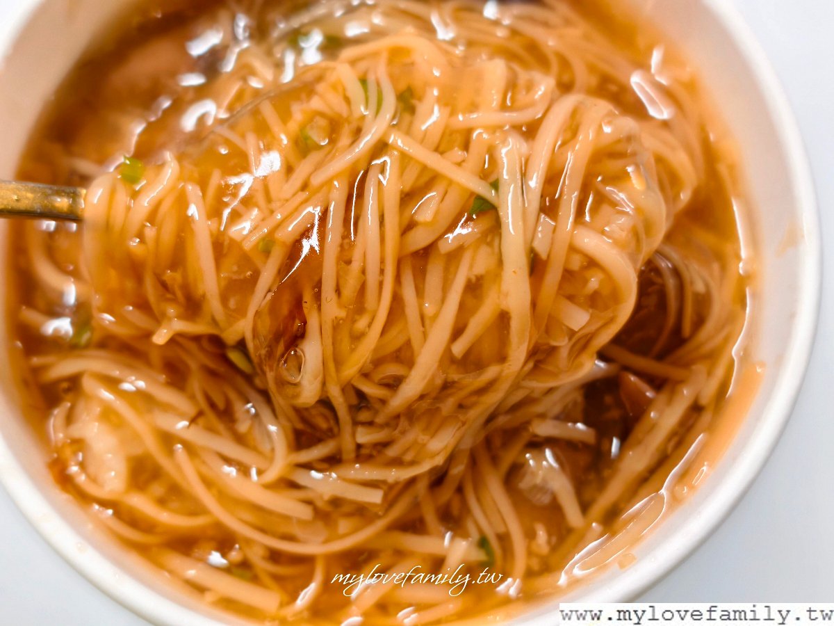 大腸肉焿麵線帶著柴魚的香氣,一樣有點甜的口感,但不會像在台南吃到的那麼甜喔!