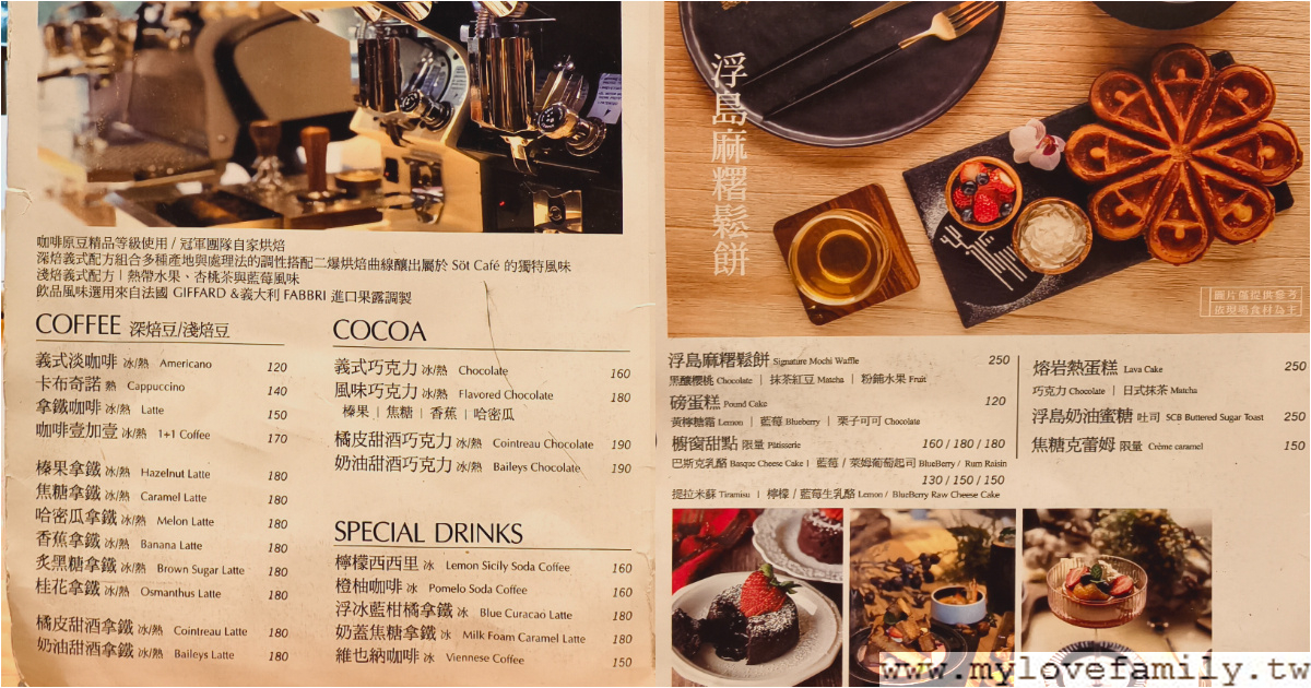 附上部份菜單給大家參考,有增加一些不一樣的餐點,早午餐的部份則是維持原本的品項,很喜歡【浮島虎山】的早午餐,含一杯咖啡/紅茶,如換其他飲品可折價$100元,這部份超划算。