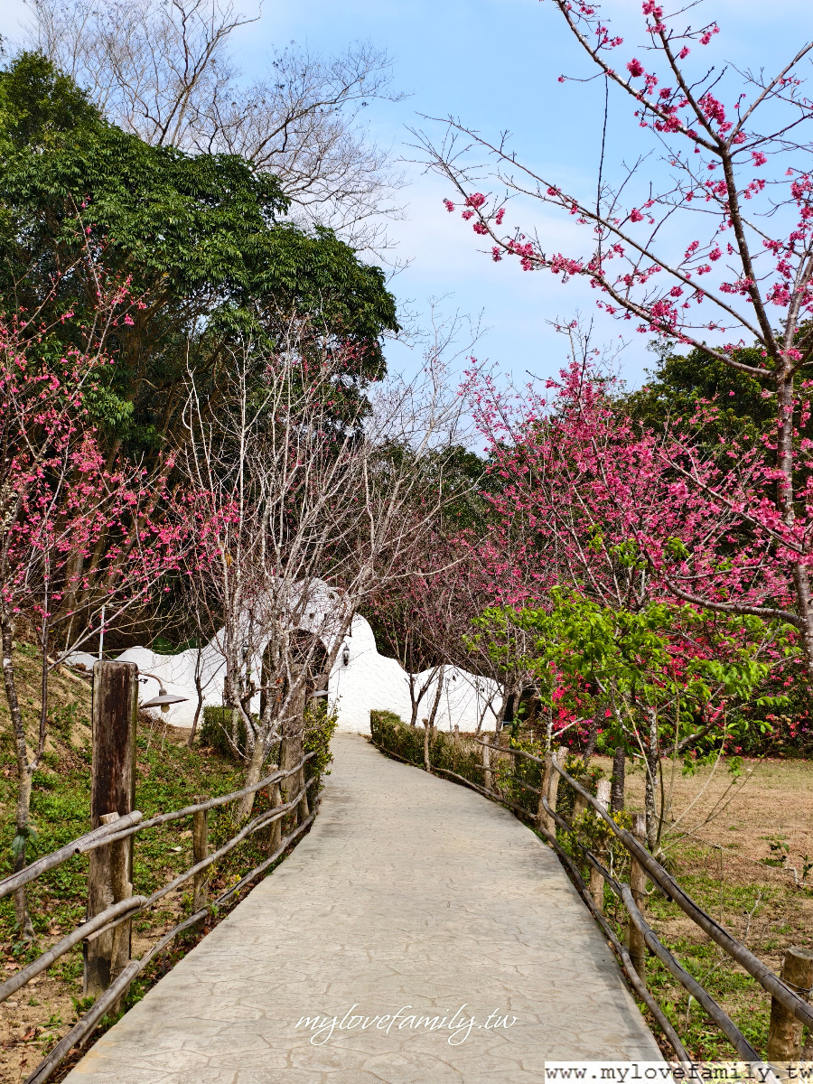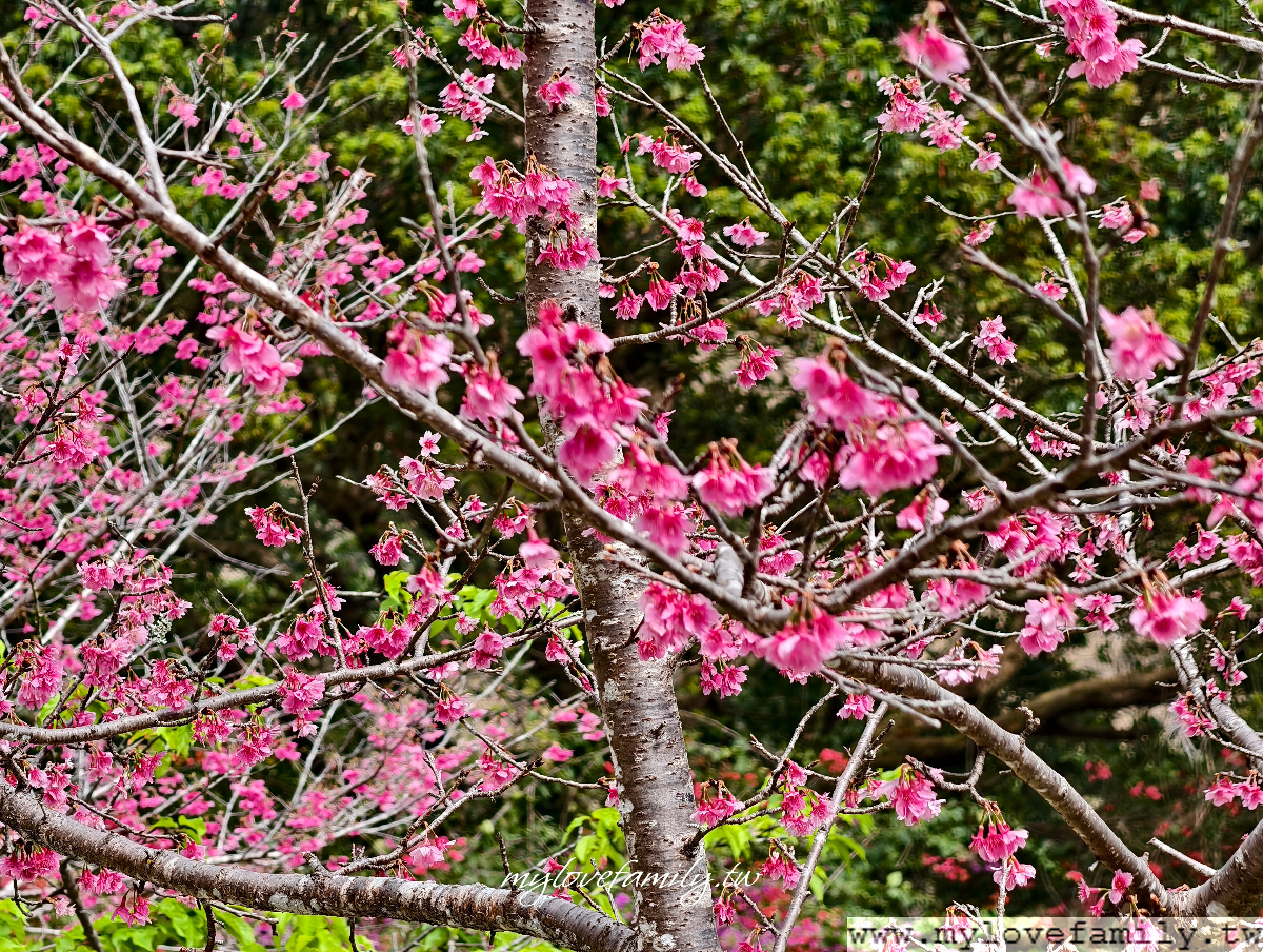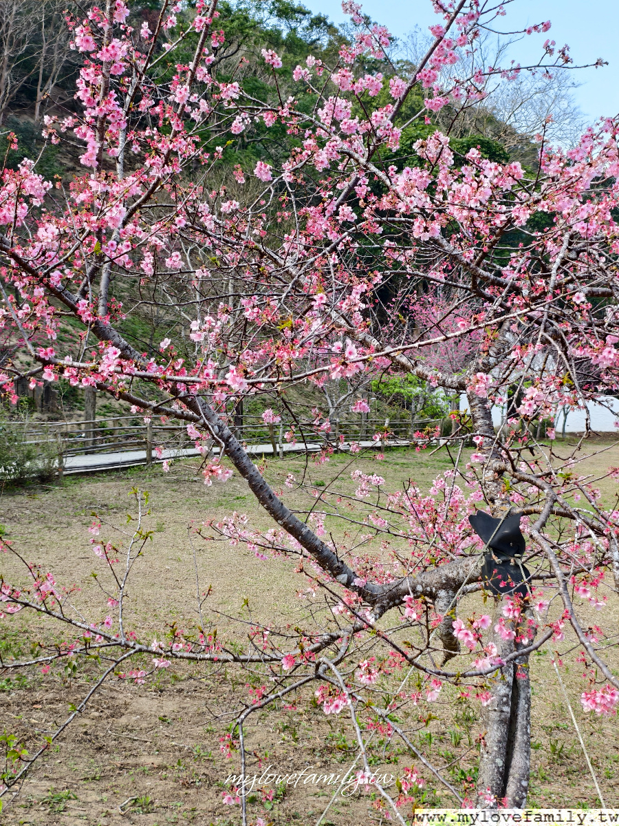 園區中的櫻花盛開中,我們到達時應開花不到二成,接下來的時間會更美喔。