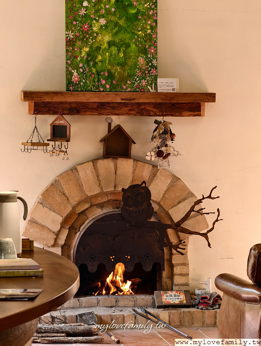 煙囪壁爐旁還放置著木柴,怎覺得聖誕節時刻,會有聖誕老公公由此而下來送禮物的畫面。