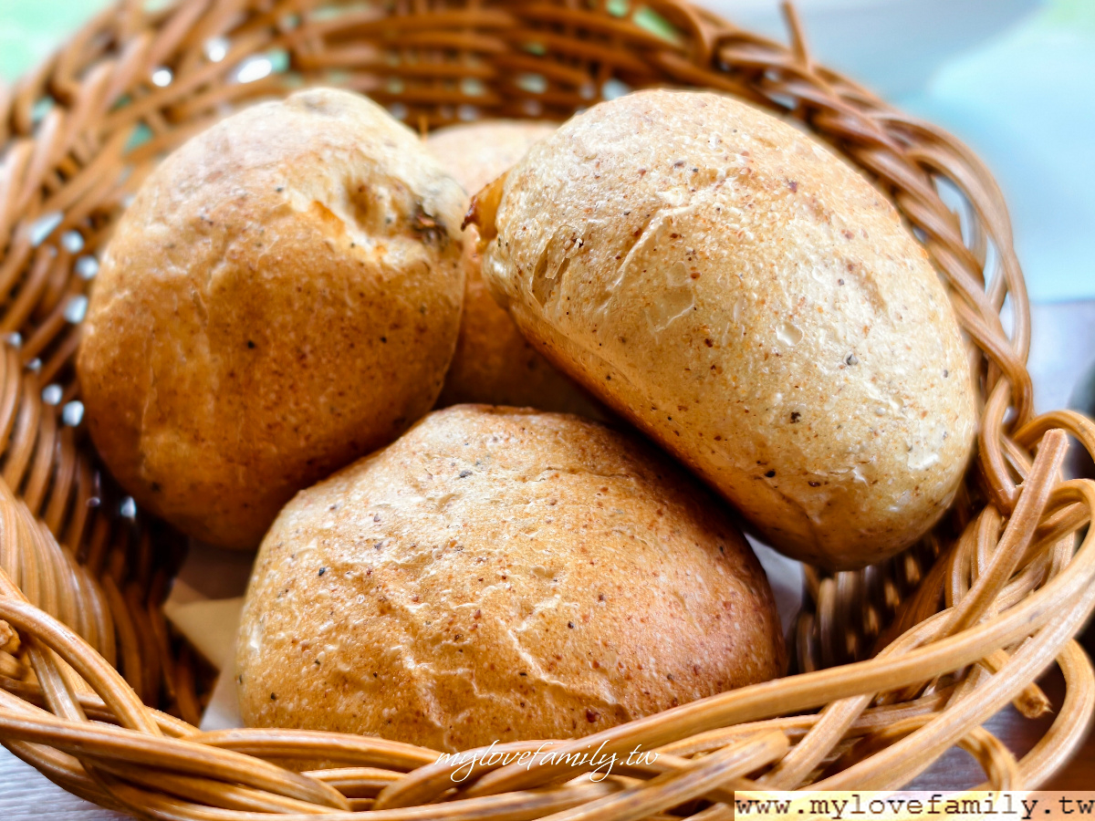 此時,店長來關心我們餐點是否合口味,在我們讚不絕口之下,店加送了這個長棍餅,沒一回的時間,我們又清空了,果然是吃貨一家。