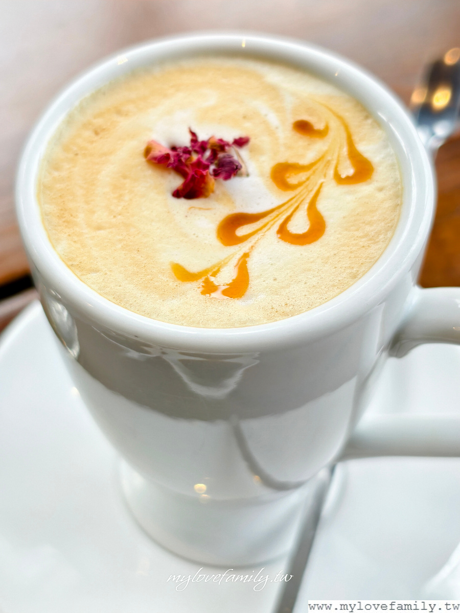 甜點就是仙草凍,味道也很到位,飲品有一杯加價升級為玫瑰拿鐵,在冷冷的氣溫之下,熱熱的玫瑰拿鐵更是迷人,而這一杯也我想起了【山行玫瑰】的玫瑰拿鐵。