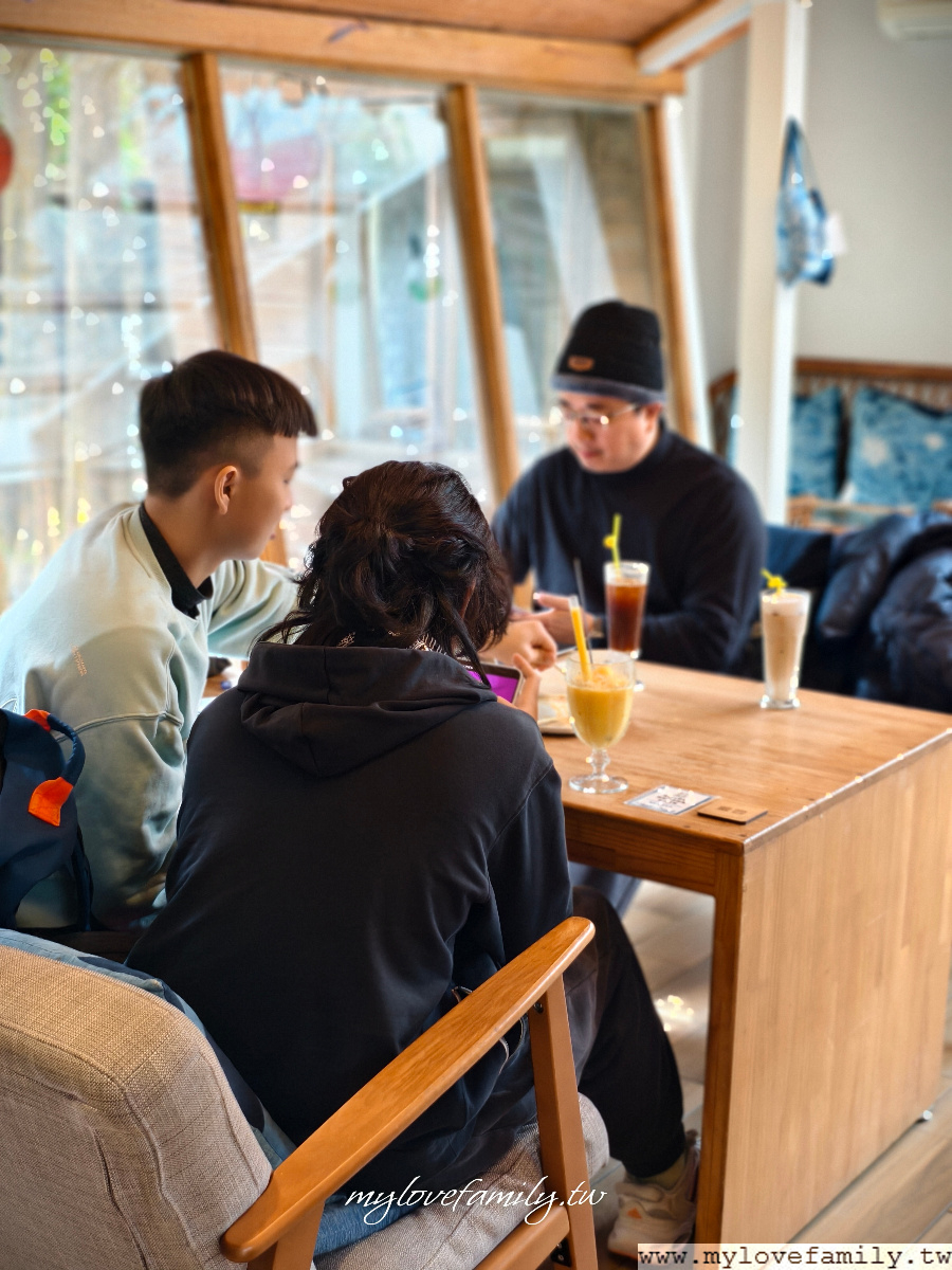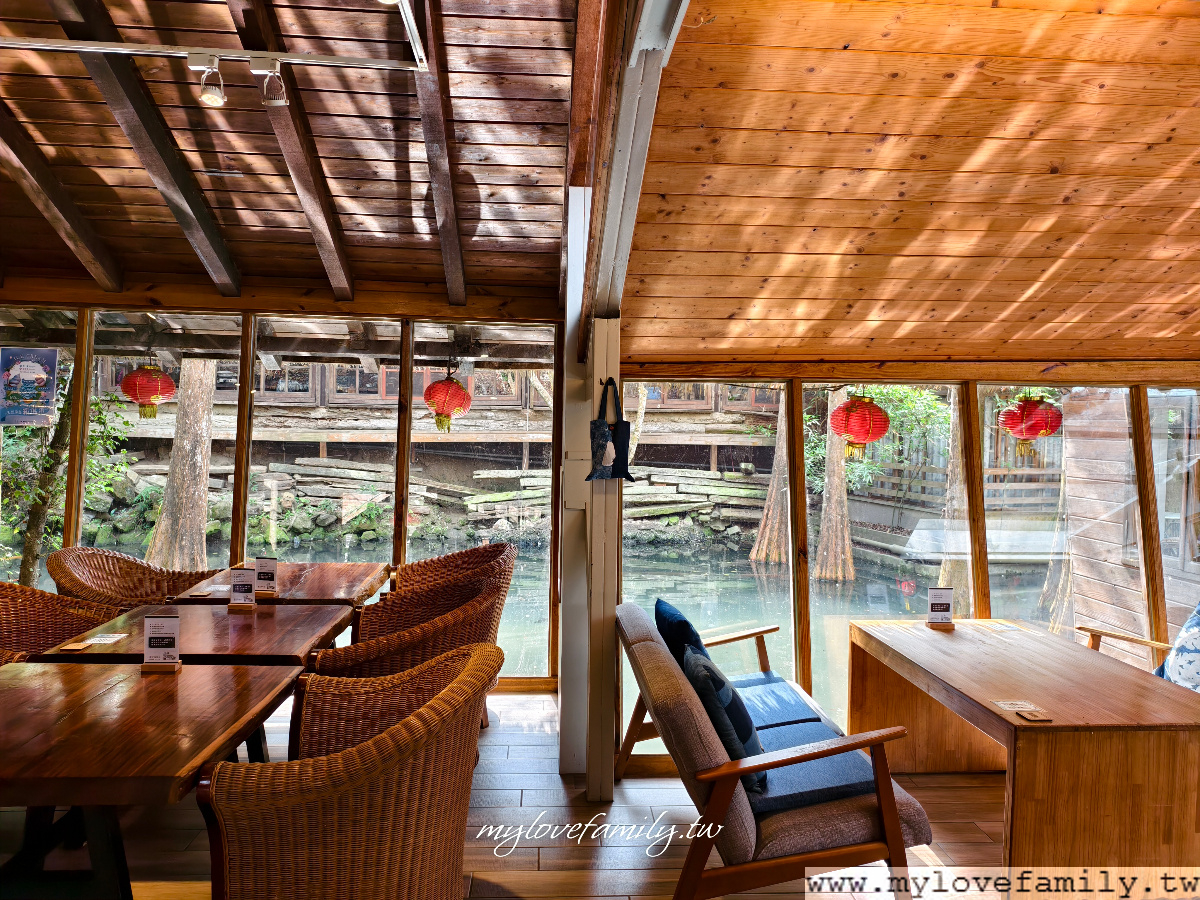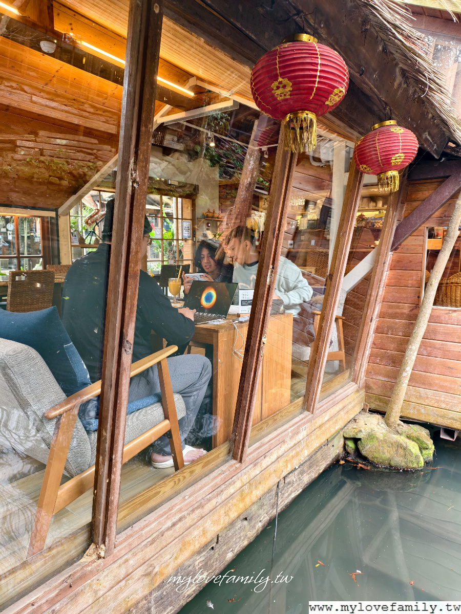 接著進入【藍庄咖啡】,水上建築的【藍庄咖啡】,部份區域如同玻璃屋的概念,建築雙側玻璃採光,當天為較寒冷的溫度之外,室外的陽光照進【藍庄咖啡】,加上水面波動著的光影,每一刻都好美。門票線上優惠請按此