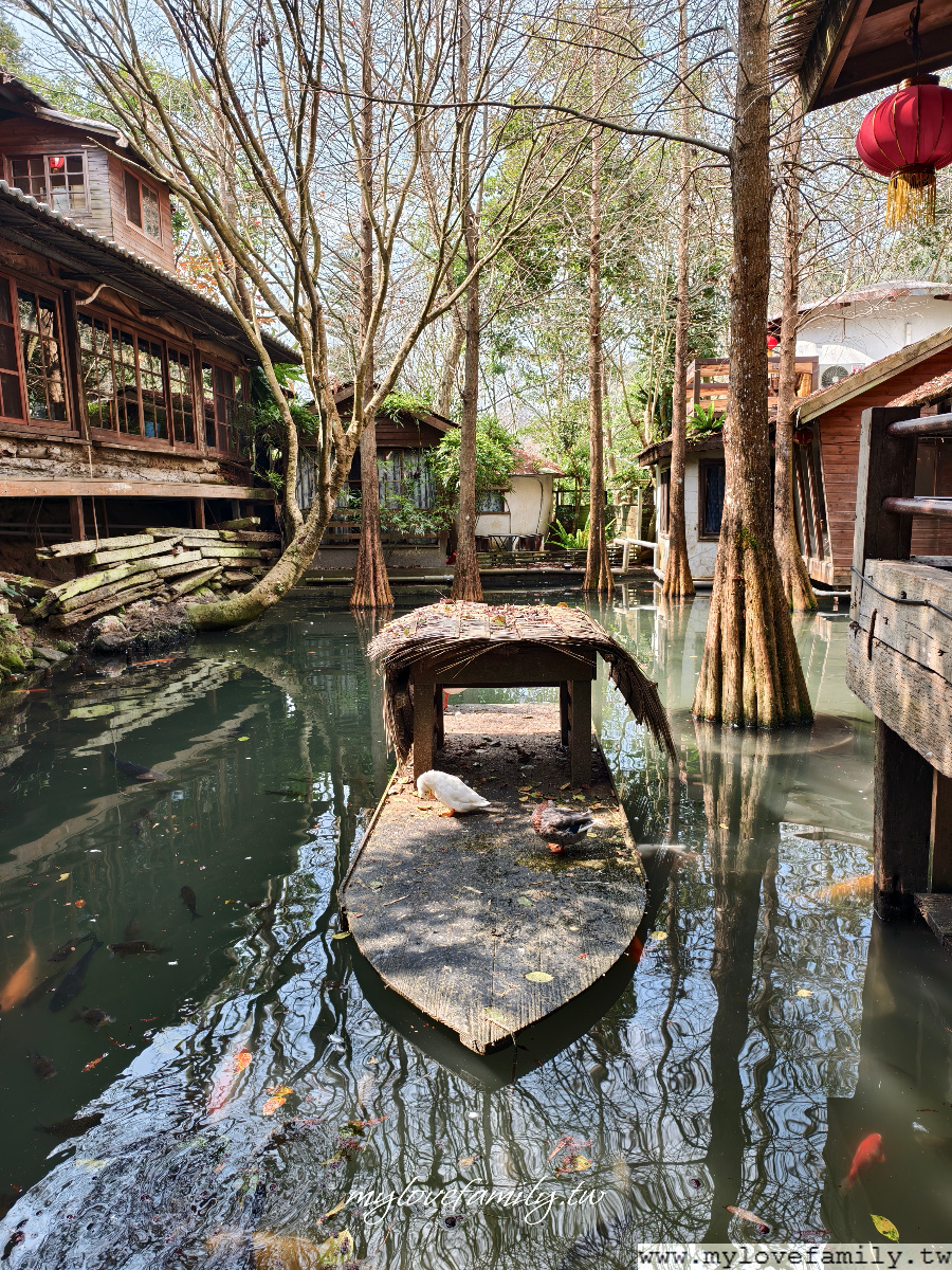 喝咖啡同時望著池塘內的鯉魚優游著,同時還有鵝及鴨子戲水中,時而還傳來鵝及鴨子嘎嘎聲,能把大自然的一切照顧的如此得宜,我想這背後有不少的心血及金錢來支撐著。