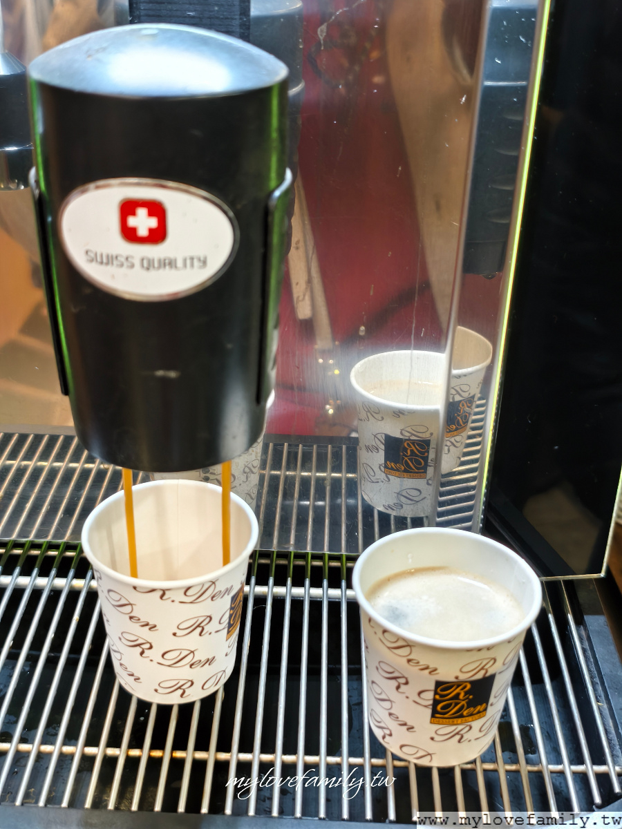 有二台咖啡機,排隊也不會等太久,排隊時會發現在些長輩真的很習慣性的要外帶,還會多倒幾杯裝回自己的杯子裏,但總覺得這樣的習慣不太好,店家很大方的提供內用,不是給您帶上車繼續喝。