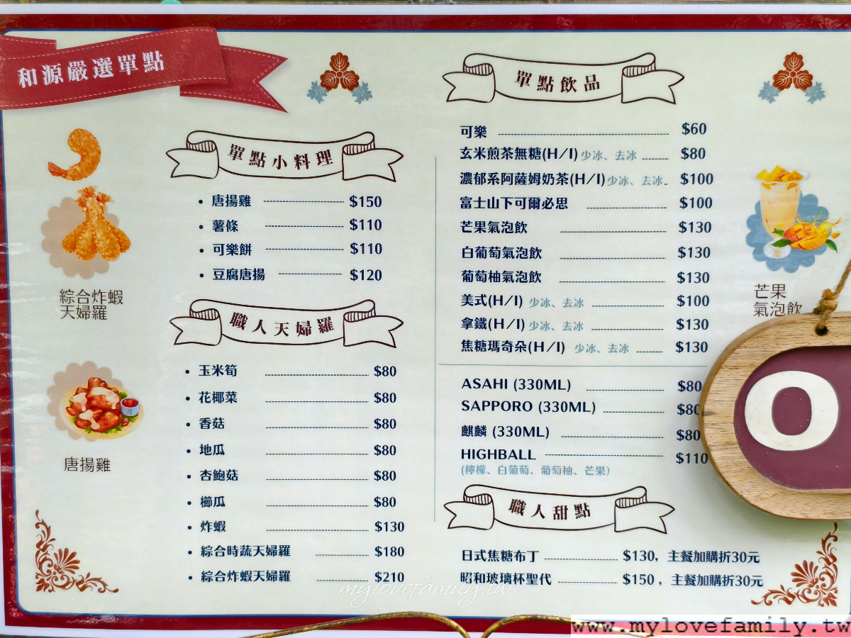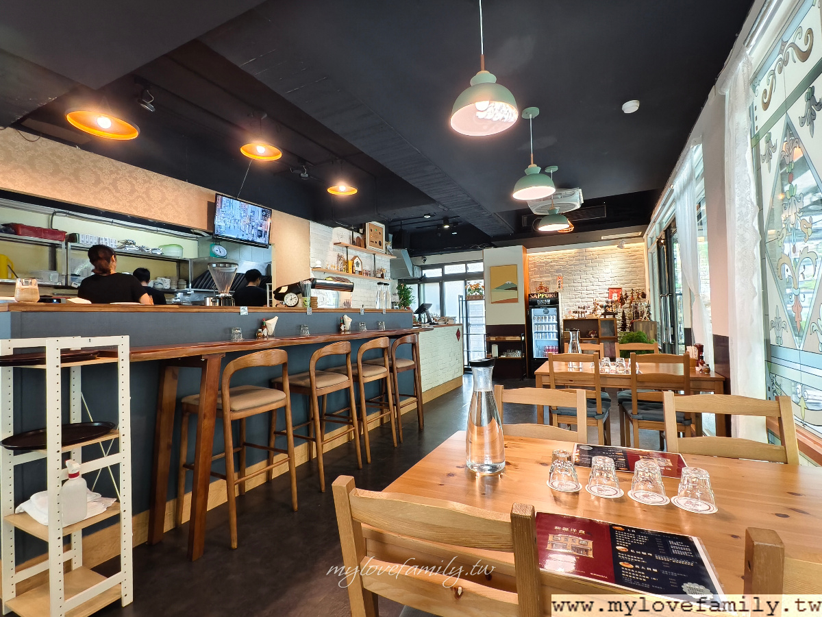 走進【和源洋食館】,中規中距日式餐館的擺設,共26個座位區,五張四人桌、一張雙人桌、四張高腳椅座位,試營運第一天,我們是第一組客人,接著有三組客人入座。