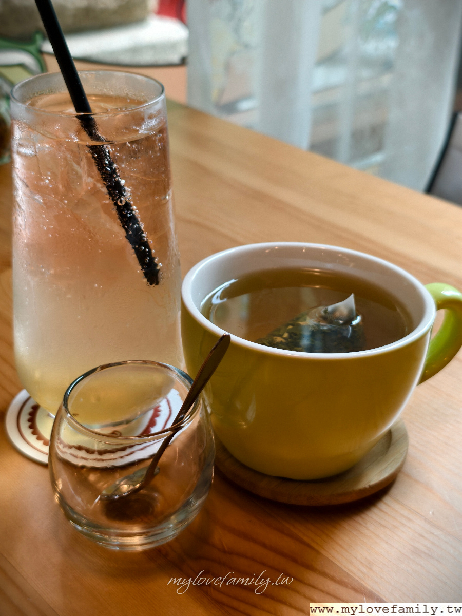 我及姐妹分別點了手打牛肉漢堡排、腰內肉厚切豬排,一份加價150元可任選飲品加布丁,另一份則加購飲品可折30元。我的白葡萄氣泡飲,姐妹則是熱玄米煎茶,熱玄米煎茶還提供一個小杯子可以將茶包拿起來,免得茶泡太久,味道過濃,這部份好貼心,只是一個小小的動作,可以明顯感覺到服務的溫度。