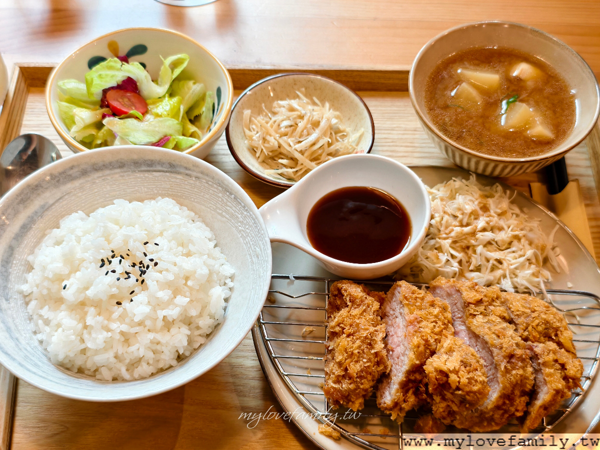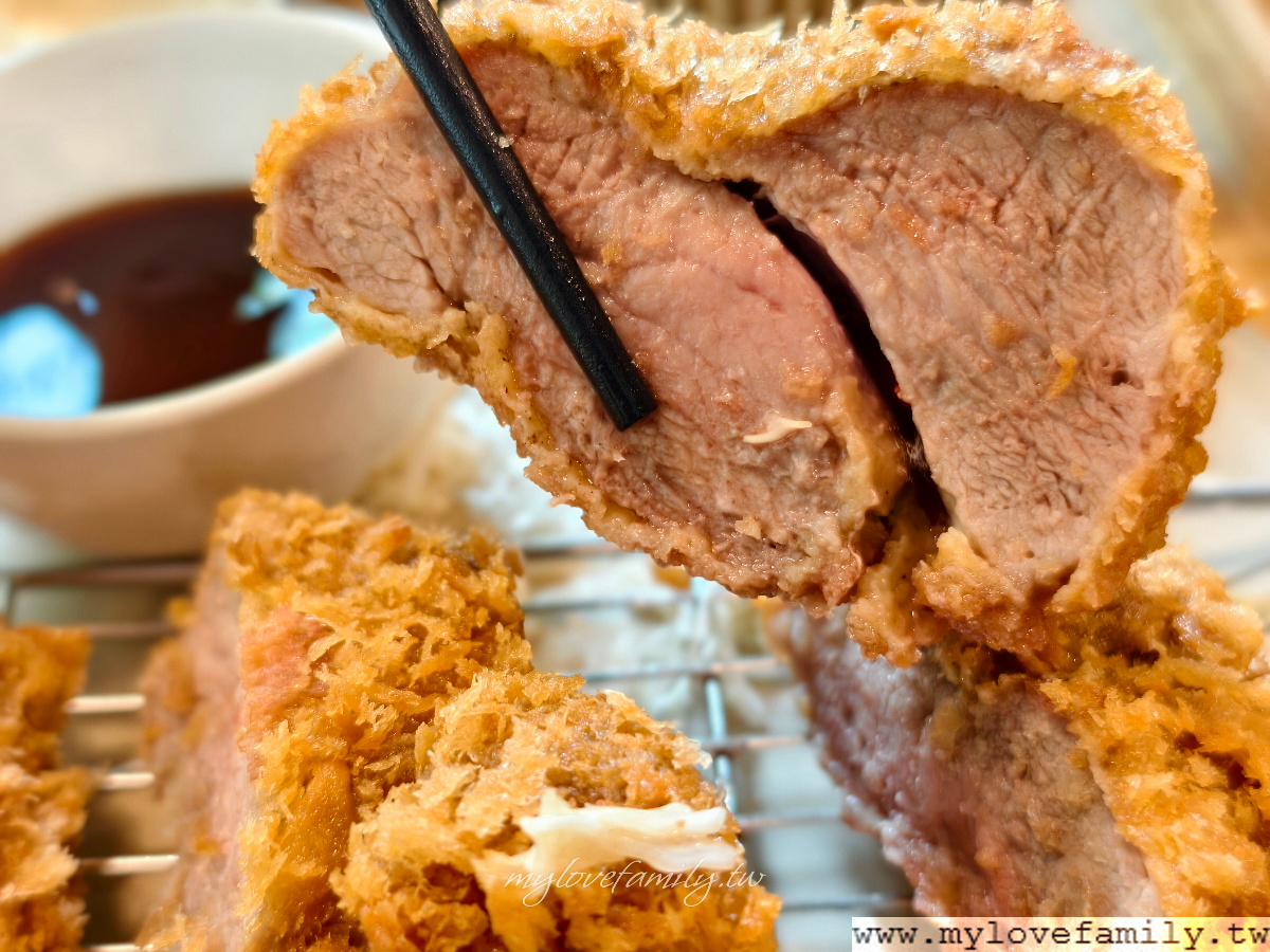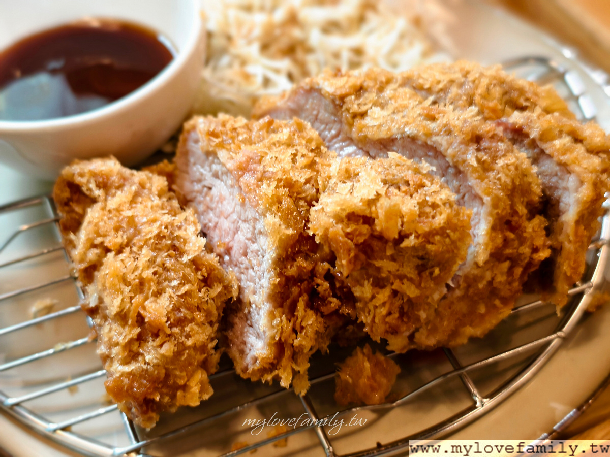 腰內肉厚切豬排,不得不說,這腰內肉厚切豬排的厚度有驚艷感,比起幾間知名連鎖店家的相同餐點,【和源洋食館】的腰內肉厚切豬排完全完勝喔!外層炸的好酥脆,內層的部份,口感非常軟嫩也沒有豬腥味,完全不乾柴,能保持鮮嫩多汁的口感,這一份我喜歡。但飯的部份,不是我喜歡的口感,當天的白飯有點太軟,我喜歡粒粒分明的口感。