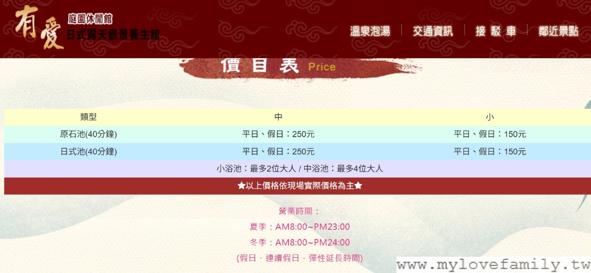 2025年價格調整如下,平假日同價,依中型池或小型池來區分價格,小型池只要$150元(2人) ,這價格真的很佛心價。