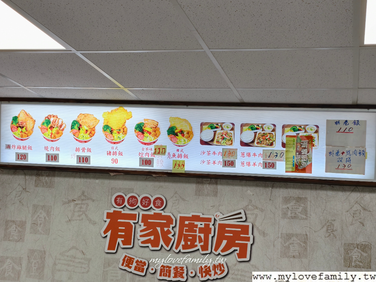 孩子們最愛的燒肉飯,因每次去買時,前面排隊的人有一半都點燒肉飯,於是也點來試試,這滿到不能再滿的燒肉飯,吃的好滿足喜樂,連一起去買的朋友們,個個都讚不絕口喔!整體而言,【有家廚房】算是相當有特色的便當店,環境也乾乾淨淨,吃過一次會愛上的餐點喔!